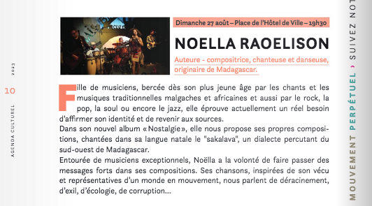 PRESSE EPSON MFP image [CONCERT] La Malgache 🇲🇬 Noëlla RAOELISON en concert à Lyon vendredi 8 novembre 2024 Interview avec Noëlla Raoelison : Échos d’une Vie en Musique Partager : Cliquer pour partager sur X(ouvre dans une nouvelle fenêtre) X Cliquez pour partager sur Facebook(ouvre dans une nouvelle fenêtre) Facebook J’aime chargement…